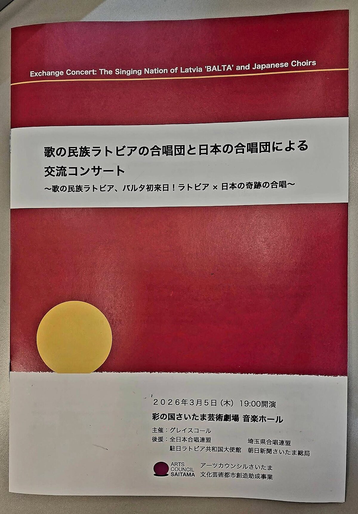 Uz festivālu īpašā ārzemju viesa statusā koris “Balta” devās pēc Japānas sieviešu kora “Grace Choir” ielūguma. Ar “Grace Choir” latviešu dziedātājas iepazinās 2024. gadā festivālā Čedžu salā Dienvidkorejā. Tolaik Japānas kori ļoti sajūsmināja latviešu tautasdziesmas Andra Sējāna apdarē "Saulīt vēlu vakarāi" izpildījums. Šogad Saitamas Mākslas teātrī skaņdarbs izskanēja ļoti dvēseliski un emocionāli abu koru kopīgā dziedājumā. Koncertā korim “Balta” pievienojās arī izcilā Latvijas Nacionālās operas un baleta teātra soliste Ilona Bagele un Japānas latviešu koris “Gaisma, kā arī koris “Vox Aurora”.